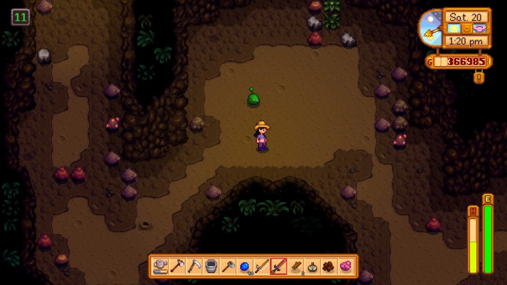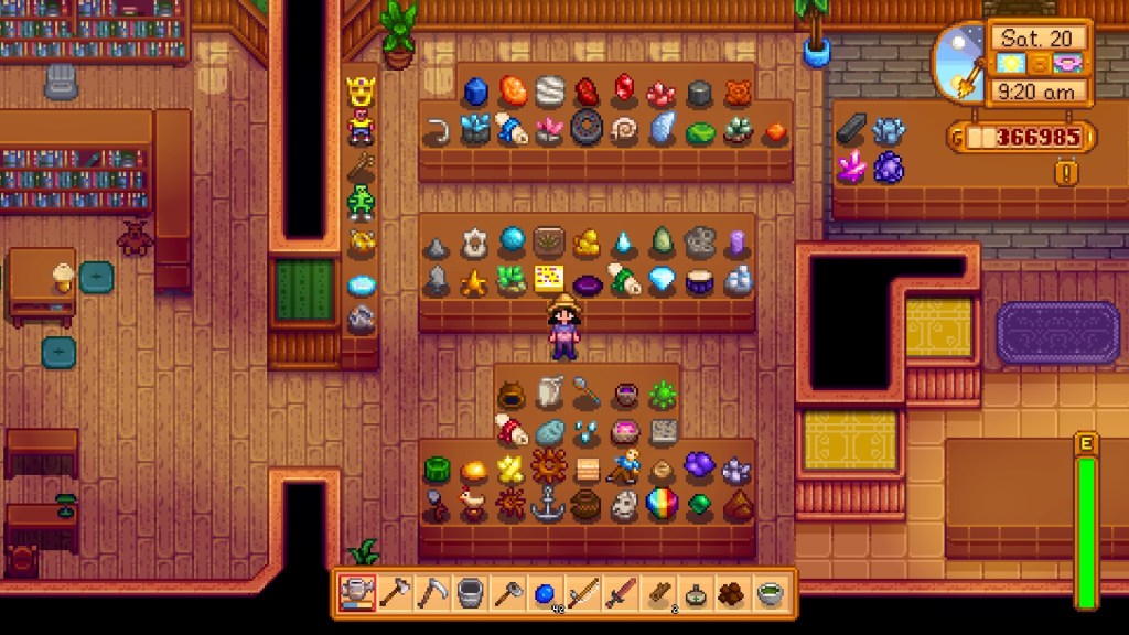 Although you can slowly build up your farm bit by bit by raising animals, harvesting crops, and catching fish, if that isn’t your thing why not fight off cute jelly-like slimes in the layers of mines? Or how about building relationships with the local NPCS? You have tools to upgrade, new locations to explore and trophies to work towards. You could become a chef and cook every single recipe the game has to offer. Or perhaps you want to add more artefacts and gemstones to your museum collection. The choice is yours how you go about each day. A positive element of the game you notice is that does not force you to explore any of these features in a linear fashion. Instead you have the freedom to choose how you want to experience the variety of gameplay options in Stardew Valley, all while experiencing the change in seasons which beautifully alters the colour palate and music of the game to create a cosy atmosphere.